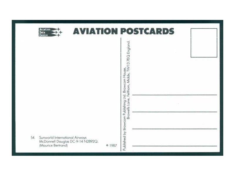 Braathens S.A.F.E.; Boeing 737-205, LN-SUA (Rückseite Version 2 - kurzer Adressblock/kleinere Schrift)