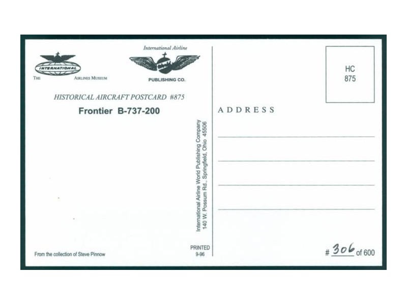 Airline Issue; 148x105 mm; Zustand neuwertig