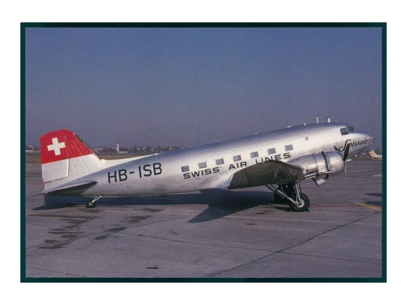 SwissairPilot vor Heck einer DC-3