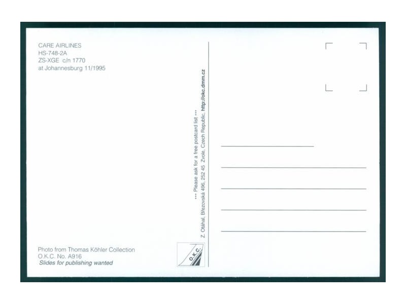 Airline Issue Krüger 272 024; 151x102 mm; sehr gut