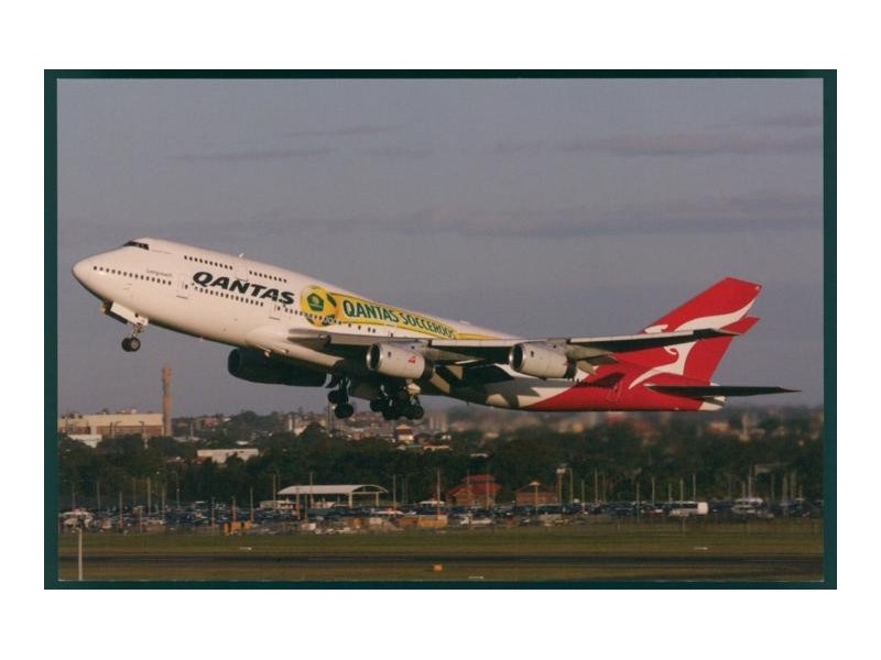 Qantas (Proudly supporting the Socceroos Bemalung); Boeing 747-438, VH-OJS