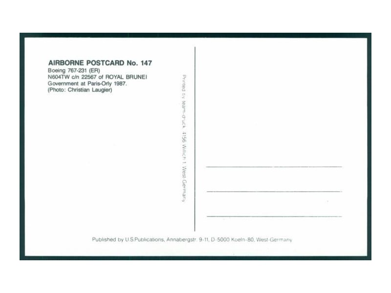 Airline Issue; 148x105 mm; Zustand neuwertig
