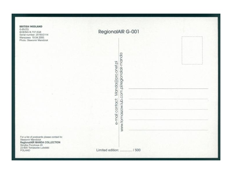 World Great Airlines WGA-1497; 148x104 mm; neu