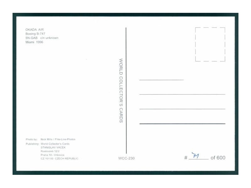 World Great Airlines WGA-922; 150x104 mm; neu