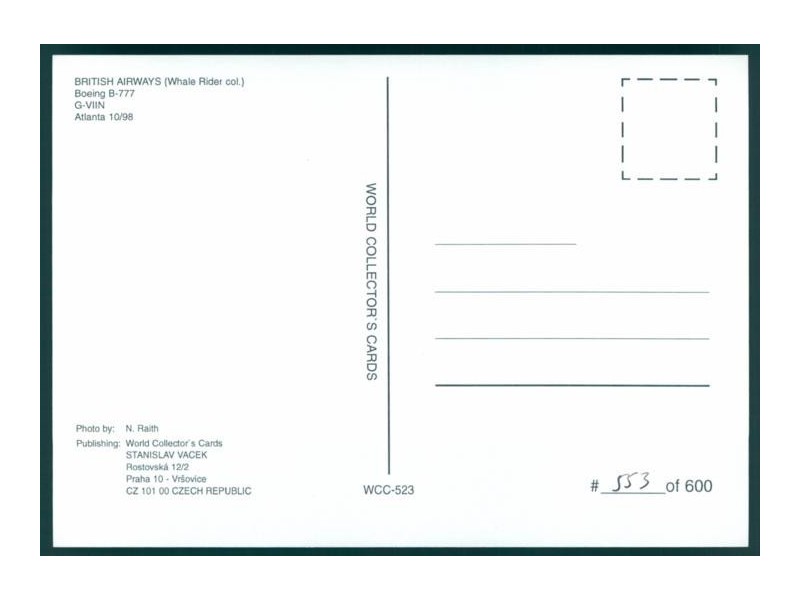 Airline Issue; 148x105 mm; Zustand neuwertig