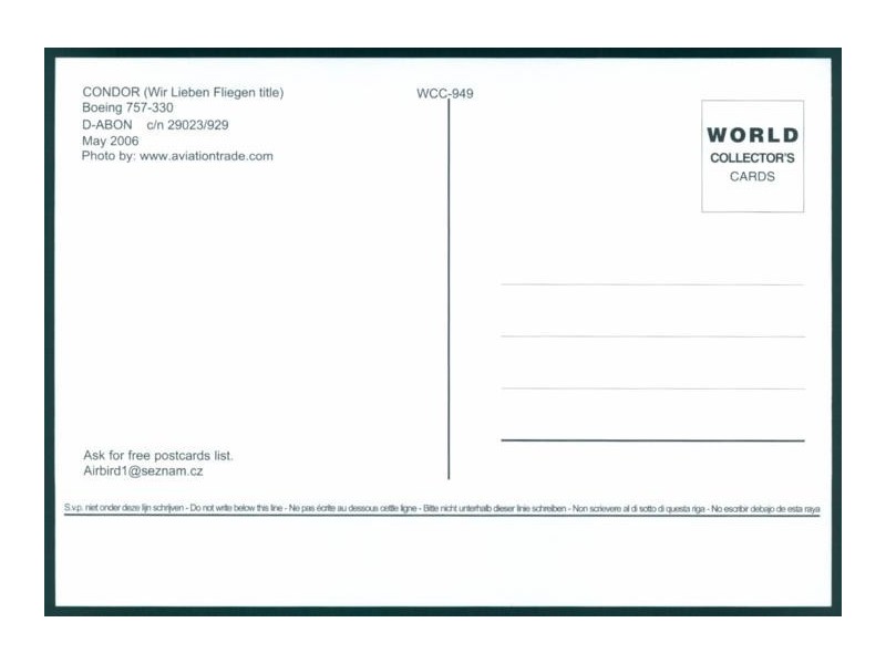 World Great Airlines WGA-570; 150x105 mm; neu