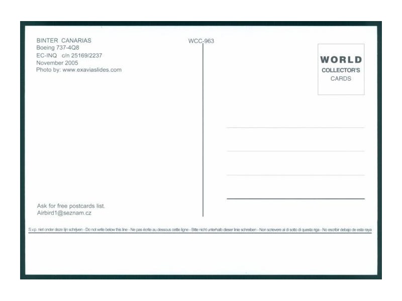 World Collector's Cards WCC-163; 148x98 mm; neu