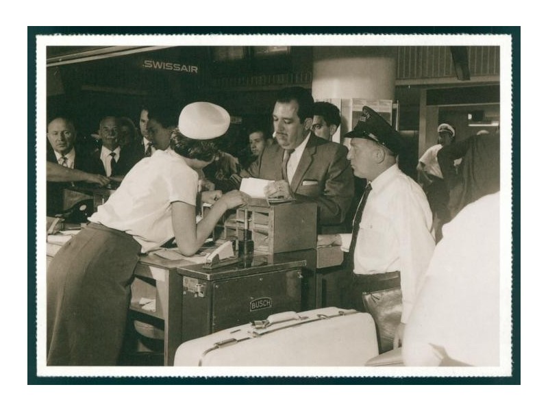 Swissair, Kabine (Fenster), Hostess beim Teeservice, 1930s