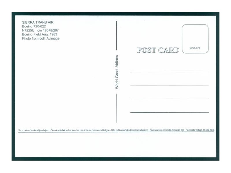 World Great Airlines WGA-394; 150x105 mm; neu