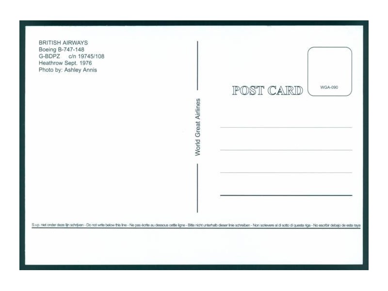 World Great Airlines WGA-1578; 148x104 mm; neu