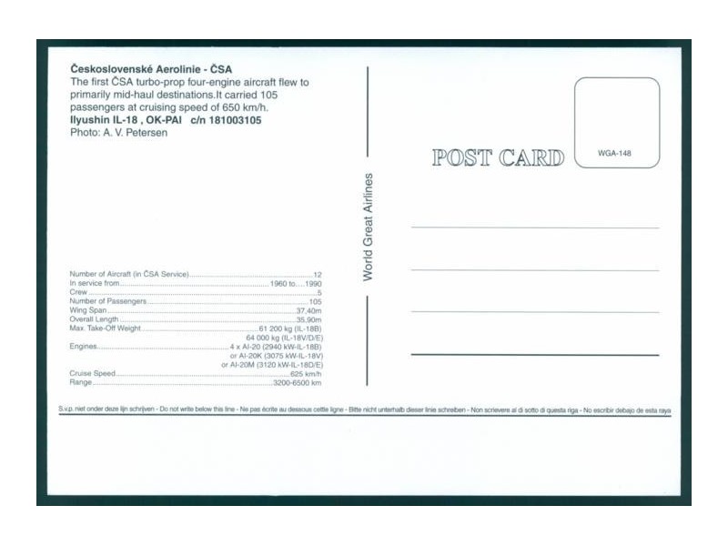 CSA - Ceskoslovenské Aerolinie; Ilyushin Il-18E, OK-PAI