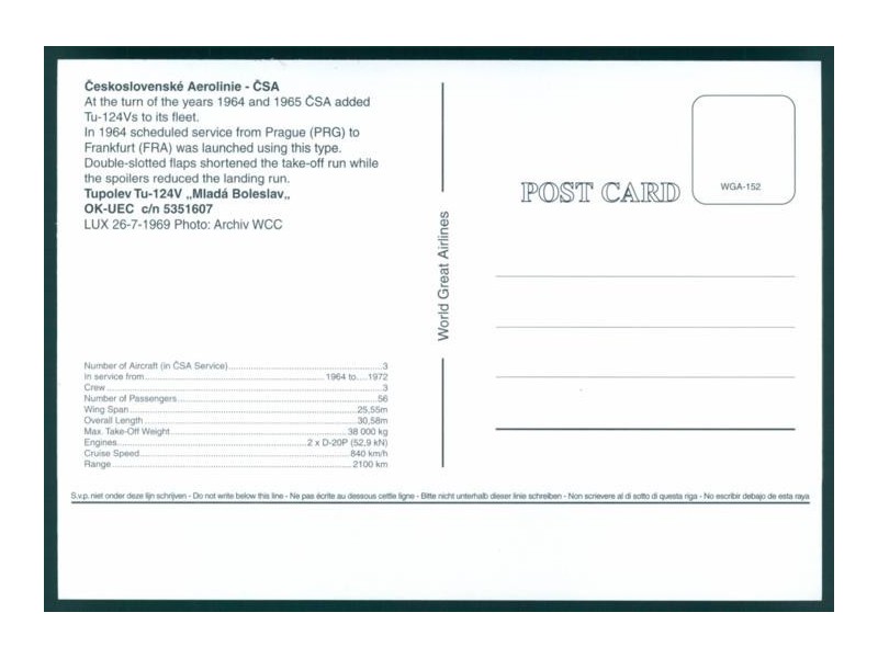 Airline Issue; 150x100 mm; Zustand neuwertig, evtl. leichte Beschädigungen (z.B. Rand, Ecken, Knicke, Kratzer, Flecken)