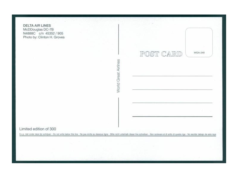 World Great Airlines WGA-1323; 148x104 mm; neu