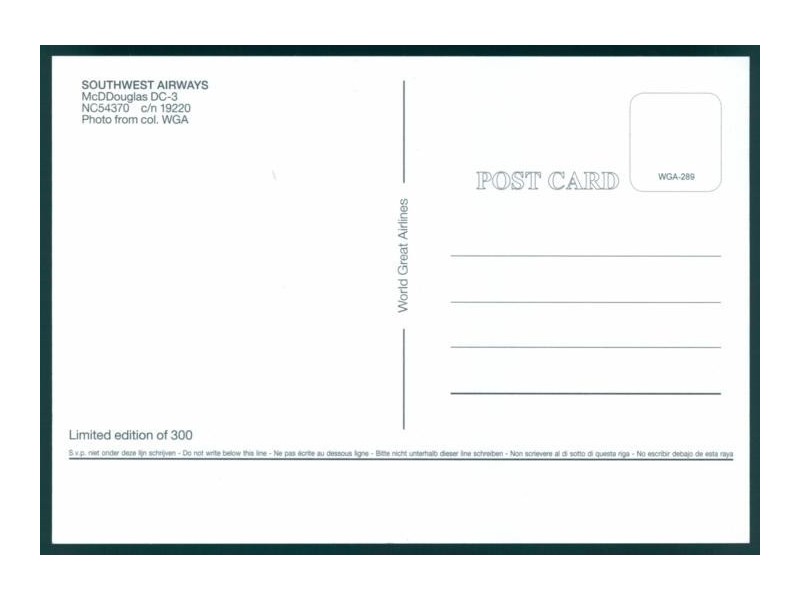 World Great Airlines WGA-1358; 148x104 mm; neu