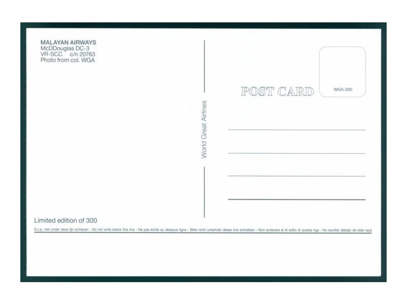 World Great Airlines WGA-603; 150x105 mm; neu