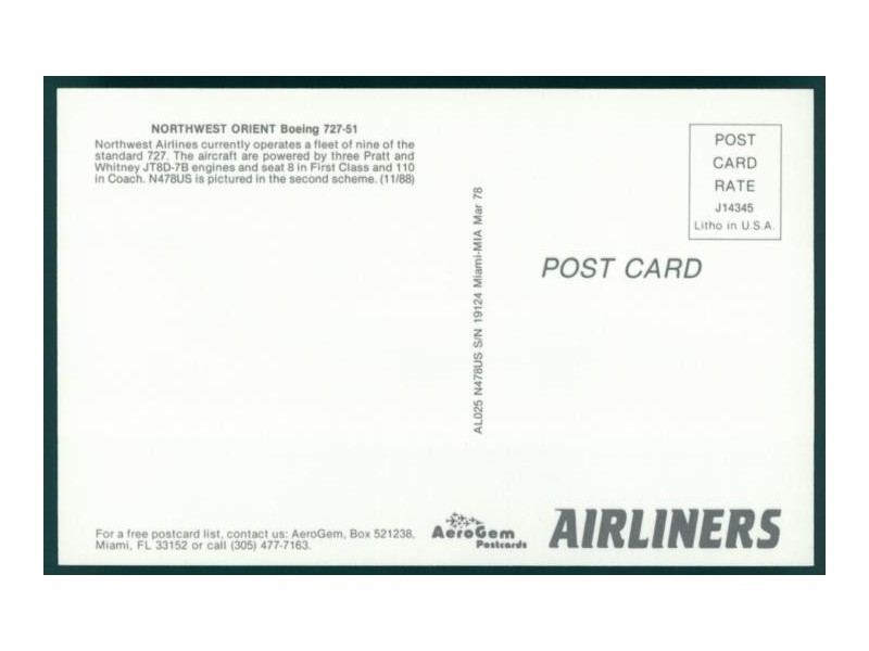 Airline Issue; 188x134 mm; Zustand sehr gut