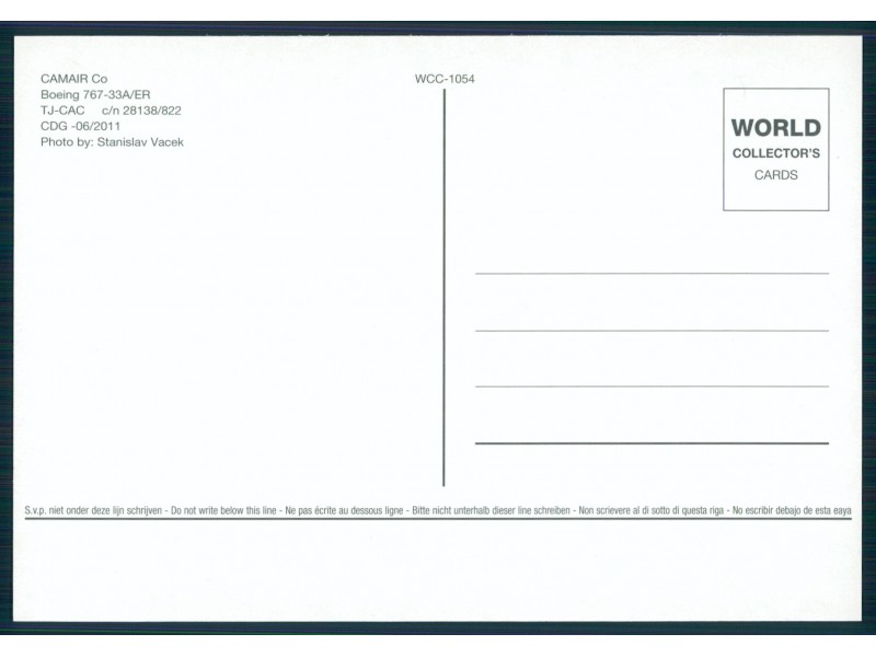 World Great Airlines WGA-807; 150x105 mm; neu