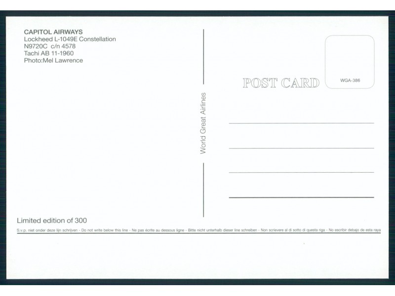 World Great Airlines WGA-1510; 148x104 mm; neu