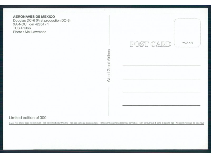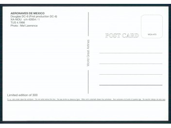 World Great Airlines WGA-001; 148x105 mm; neu