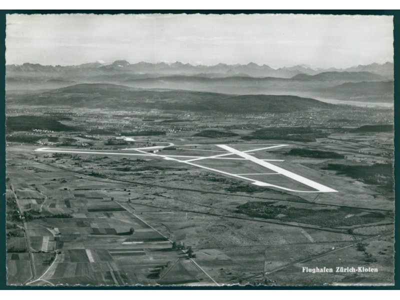 Zürich: Luftaufnahme Pistensystem 1948/1949 + Schweizer Alpen