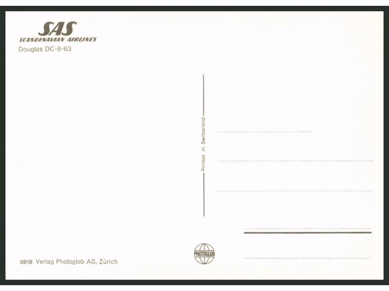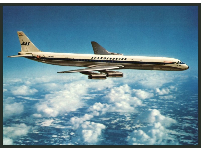SAS - Scandinavian; DC-8-63, LN-MOU (Version 1 - Rückseite mit "Printed in Switzerland")