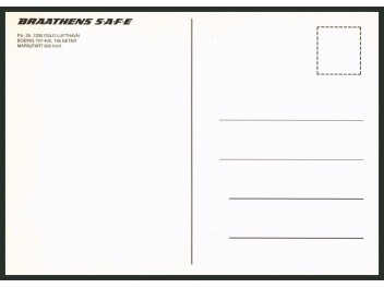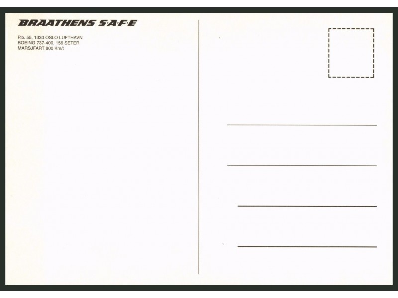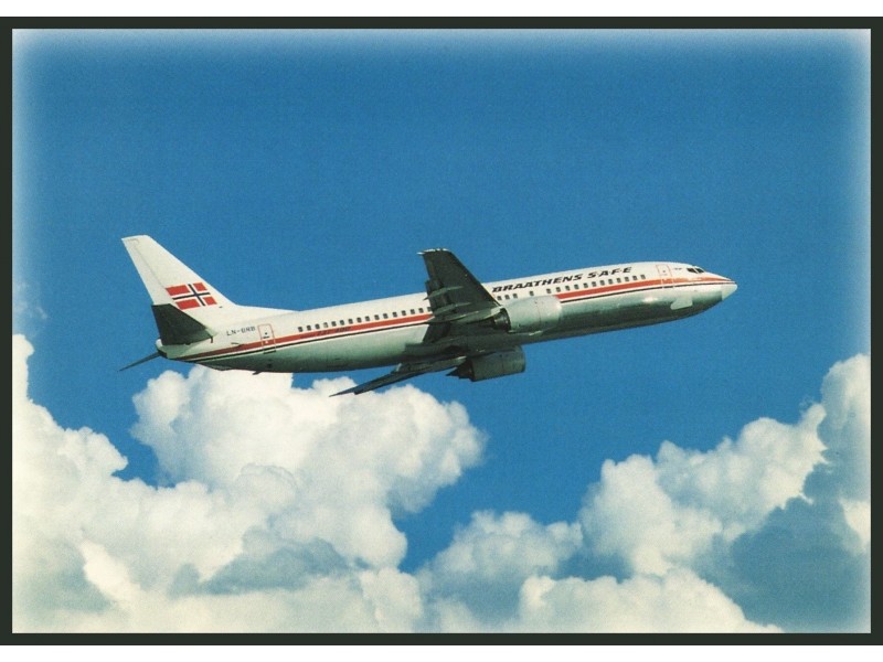 Braathens S.A.F.E.; Boeing 737-405, LN-BRB (Version 2 - mit Rahmen, Adresse in Norwegisch)