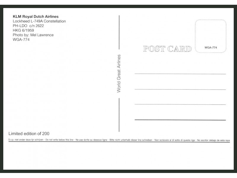 World Great Airlines WGA-565; 150x105 mm; neu