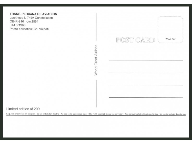 World Great Airlines WGA-877; 150x104 mm; neu