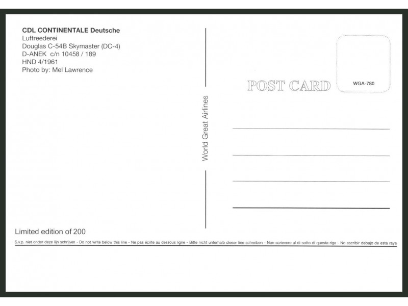 World Great Airlines WGA-601; 150x105 mm; neu
