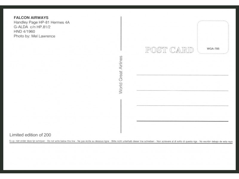 World Great Airlines WGA-441; 150x105 mm; neu