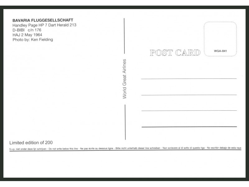 World Great Airlines WGA-1421; 148x104 mm; neu
