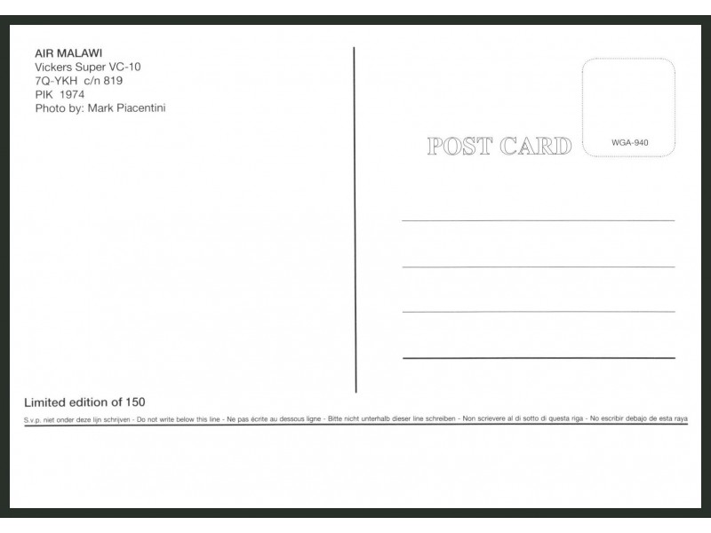 World Great Airlines WGA-086; 148x105 mm; neu