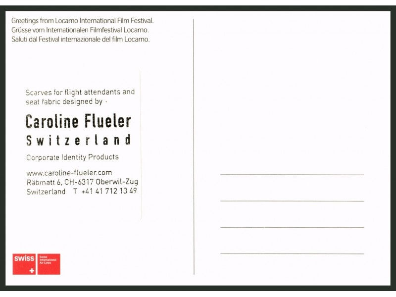 Swiss; Business Class Kabine / Flight Attendants, offizielle Airline des 59. Locarno Filmfestivals; Sticker auf Rückseite