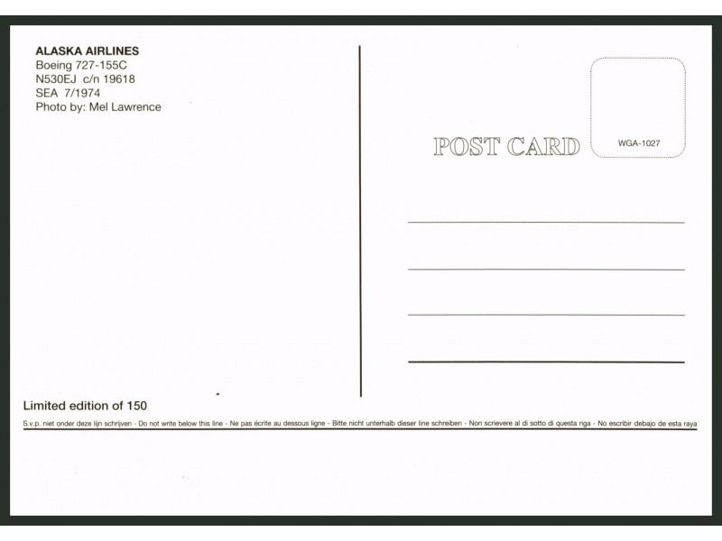 World Great Airlines WGA-952; 150x104 mm; neu