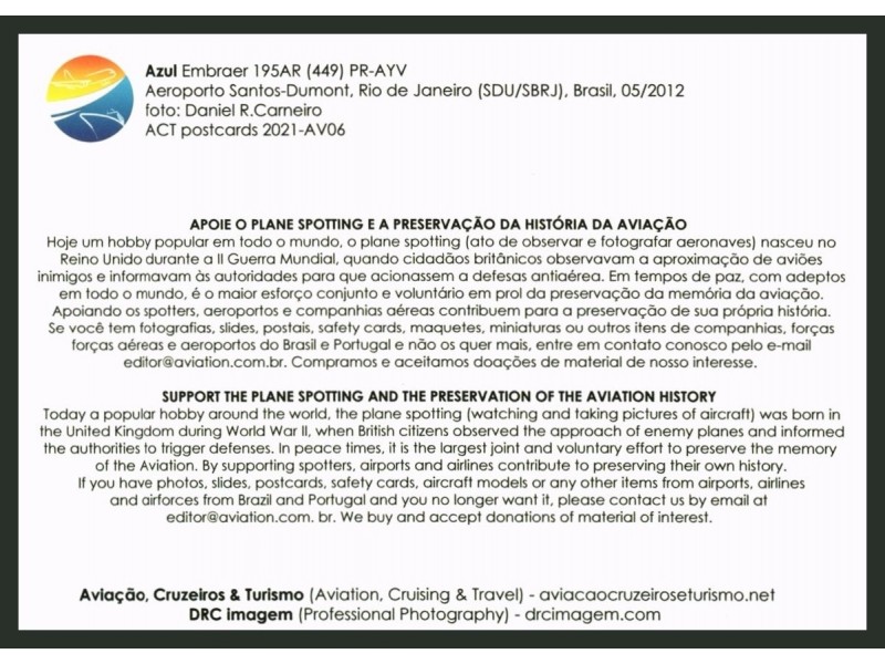 Azul (couleurs Brasil); Embraer 195AR, PR-AYV