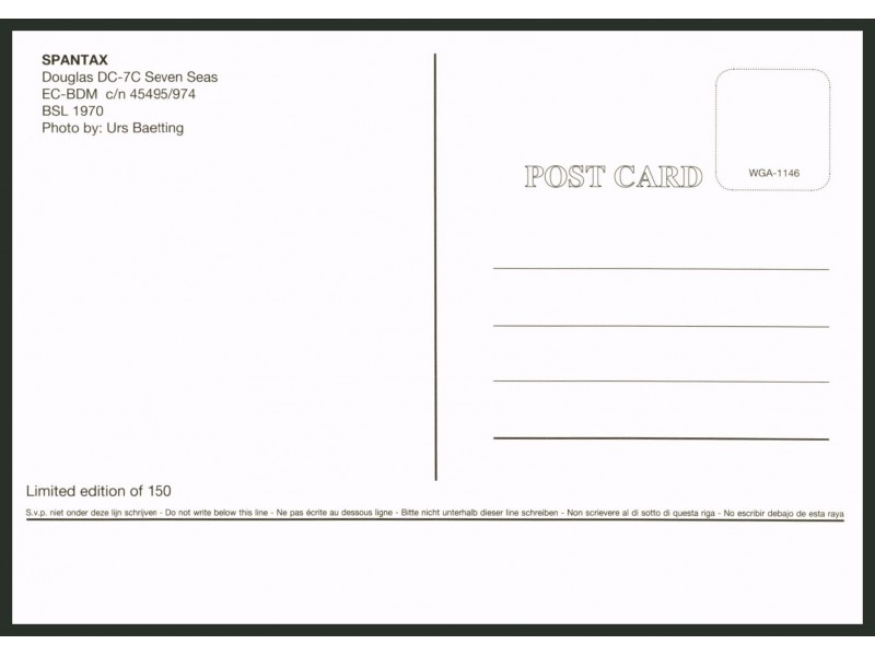 World Great Airlines WGA-1303; 148x104 mm; neu