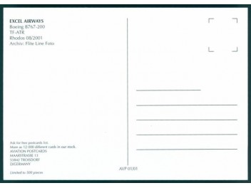 Airline Issue; 136x92 mm; Zustand gebraucht/gut