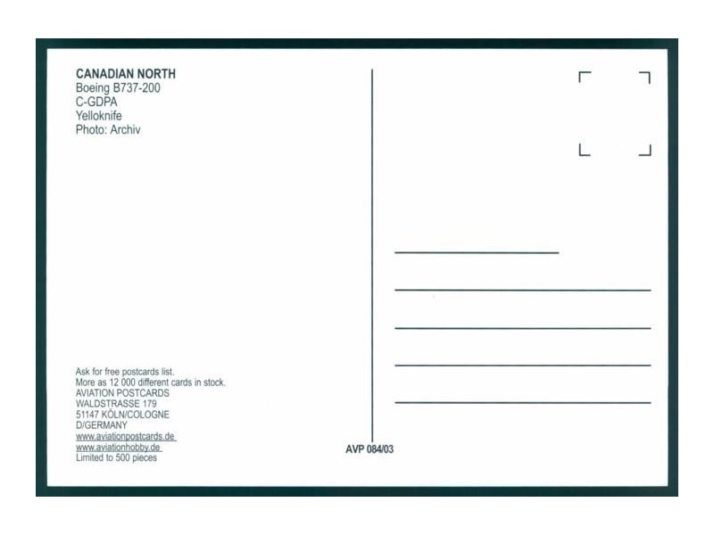 Civil Aircraft Postcards 117; 152x101 mm; neu