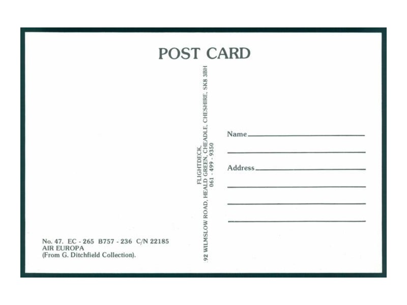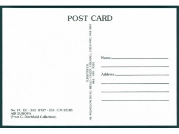 Airline Issue; 5.8''x4.1'' (148x105 mm); mint