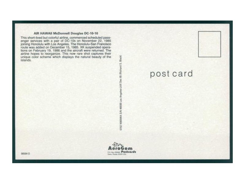 AeroGem Postcards 0212; 5.5''x3.5'' (139x89); new