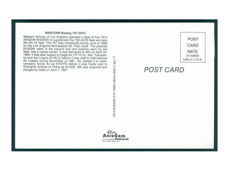 Airline Issue; 5.8''x3.9'' (147x100 mm); mint