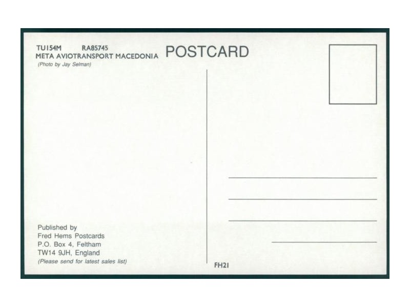 Wingtip Postcards W138; 5.5''x4.2'' (139x107); new