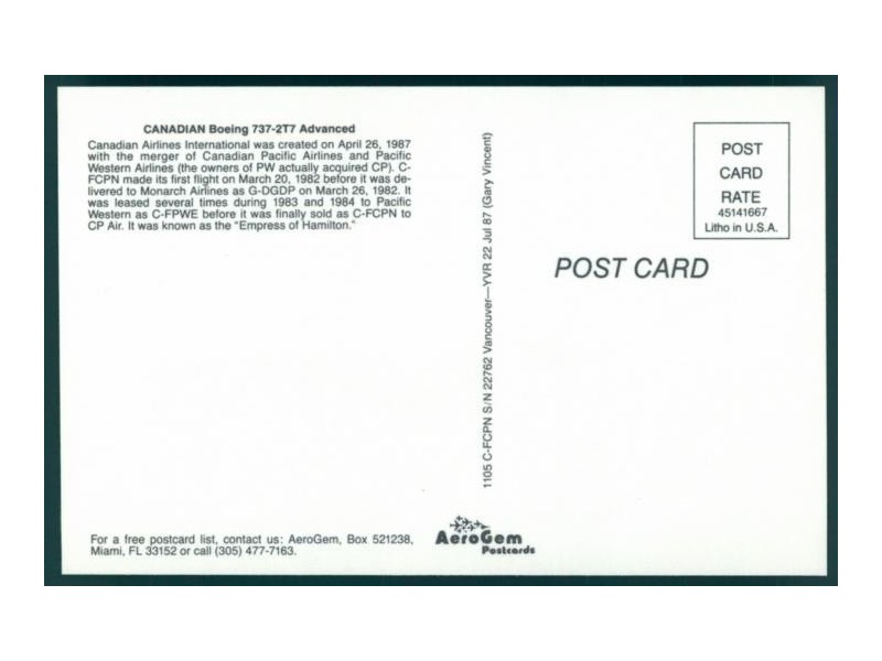 Aviation World D-000; 5.5''x3.5'' (140x89); new