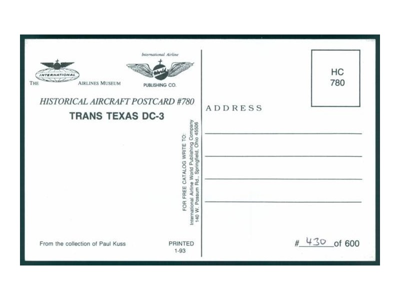 Wingtip Postcards W88; 5.5''x4.2'' (139x106); new