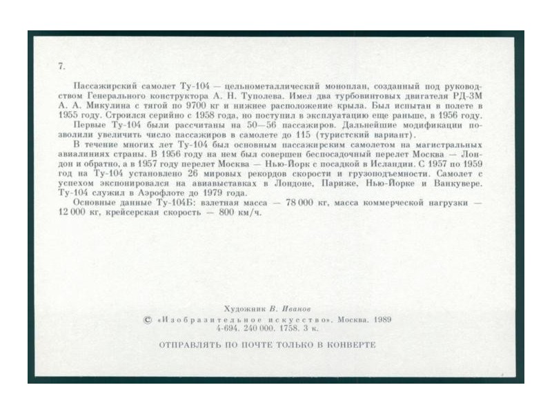 Civil Aircraft Postcards 70; 5.9''x4'' (151x101); new