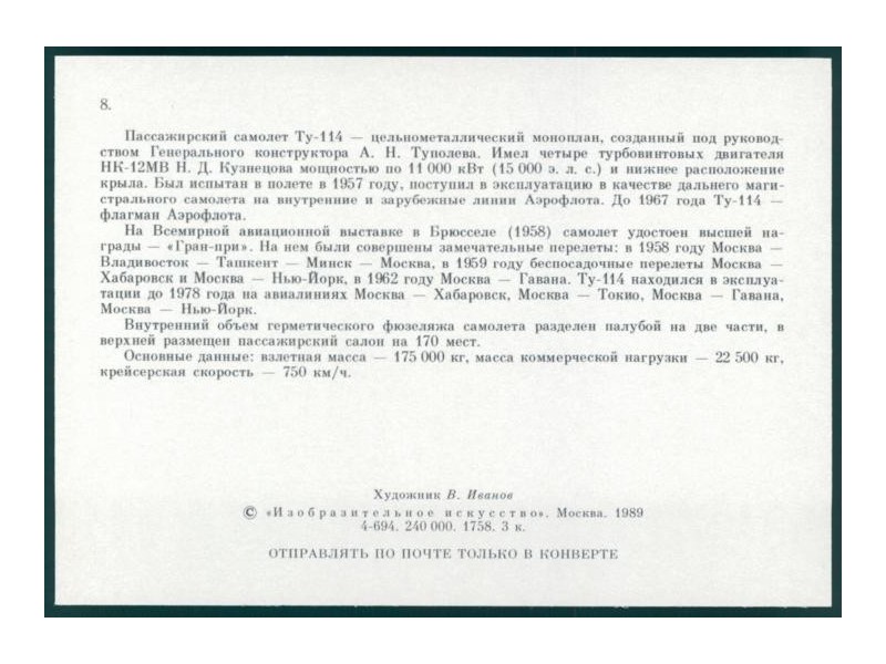 Wingtip Postcards W63; 5.5''x4.2'' (139x107); new