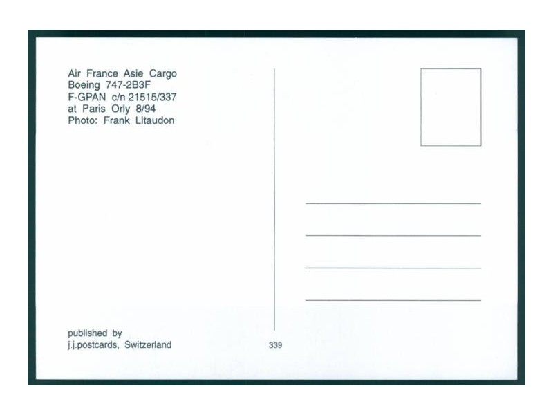 Airline Issue, JAL Fleet Postcard Book 3 - B747, page 23; 5.9''x4'' (149x101 mm); new