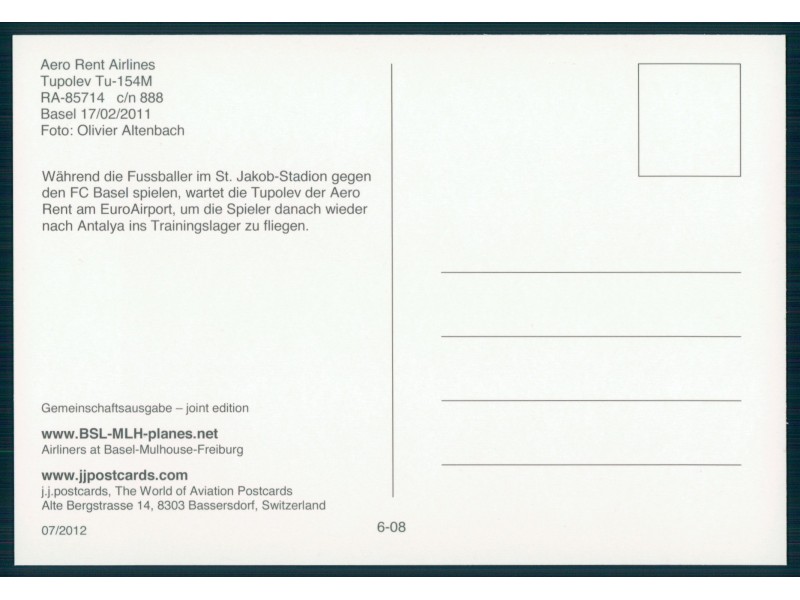 Civil Aircraft Postcards 189; 5.9''x3.9'' (150x100); new