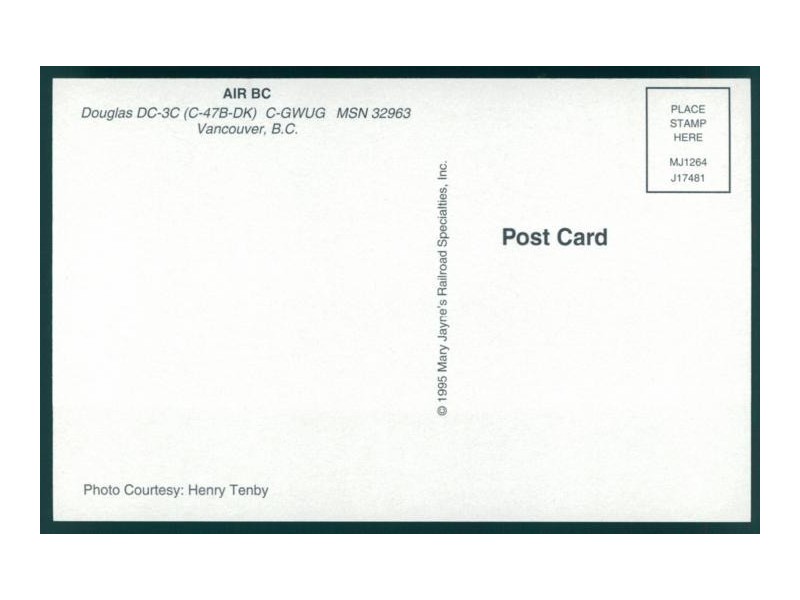 Airline Issue; 5.9''x4'' (150x101 mm); mint