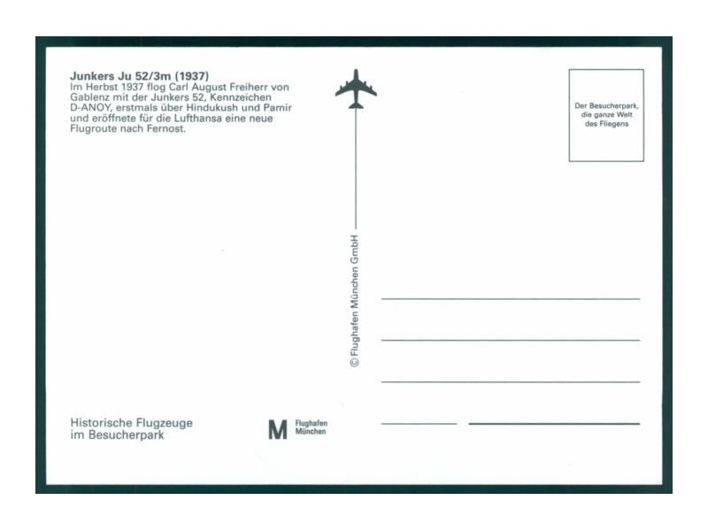 Airline Issue/Fliegermuseum Dübendorf, Ju-Air calendar 1998/August; 5.9''x3.9'' (149x99 mm); mint